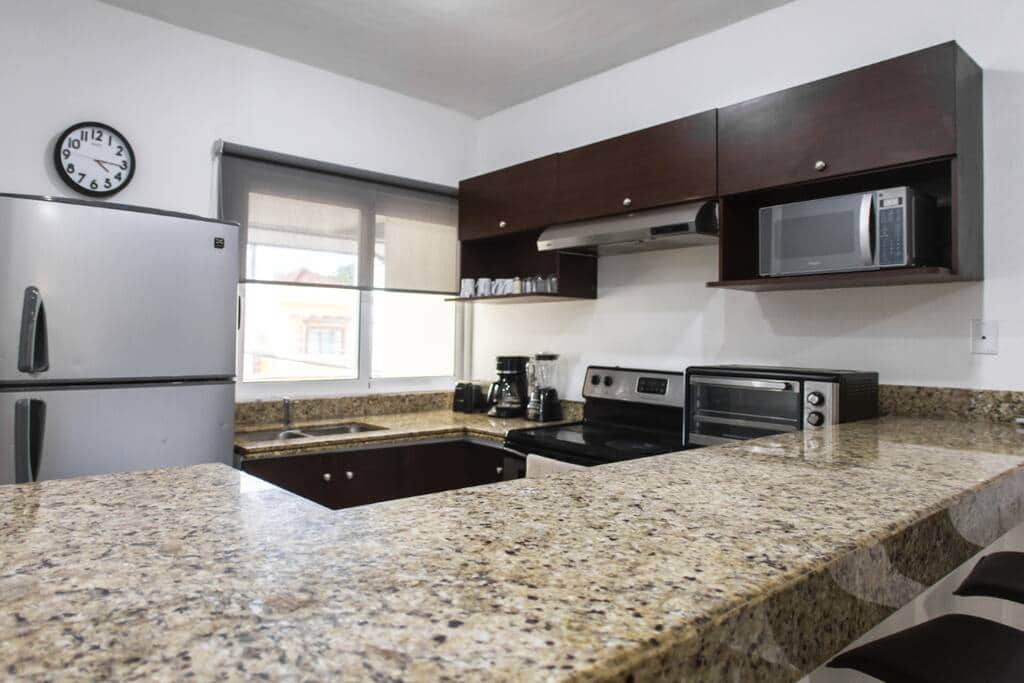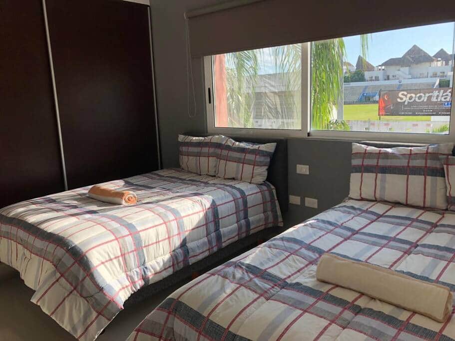This roomy condo let you feel as your second home with all the amenities that you need in a vacation rental. Forget your worries in this great accommodation, it is an oasis of tranquility! In the common area you can find big pool, 2 jacuzzis, gym, business center, kids zone and even billiards & ping pong, free underground parking, reception & security 24/7. Just 3 minutes walking distance to the 5th avenue and 7 minutes to Mamita's beach. · Free 50 mb WiFi. • Bath & beach towels. · A/C in each bedroom & living room. · Smart TV 1st bedroom - 1 king size bed (suite). 2nd bedroom - 2 queen size beds (suite). 3rd bedroom - 2 double size beds (suite). *You can use the pool from 9:00 a.m. to 10:00 p.m. *The elevator in the building has capacity for a maximum of 4 people