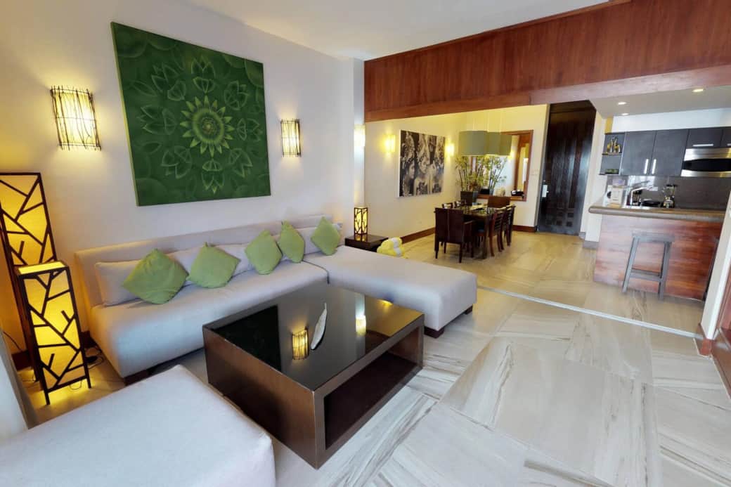 Dpto de 2 recámaras y 2 baños dentro de uno de los complejos más exclusivos de Playa del Carmen. Espacio moderno y climatizado, ideal para familias o grupos. Balcón con alberca privada, mesa y camastros para disfrutar del sol. Recámara principal con cama king y baño privado; segunda recámara con 2 camas queen y 2 camas individuales plegables.