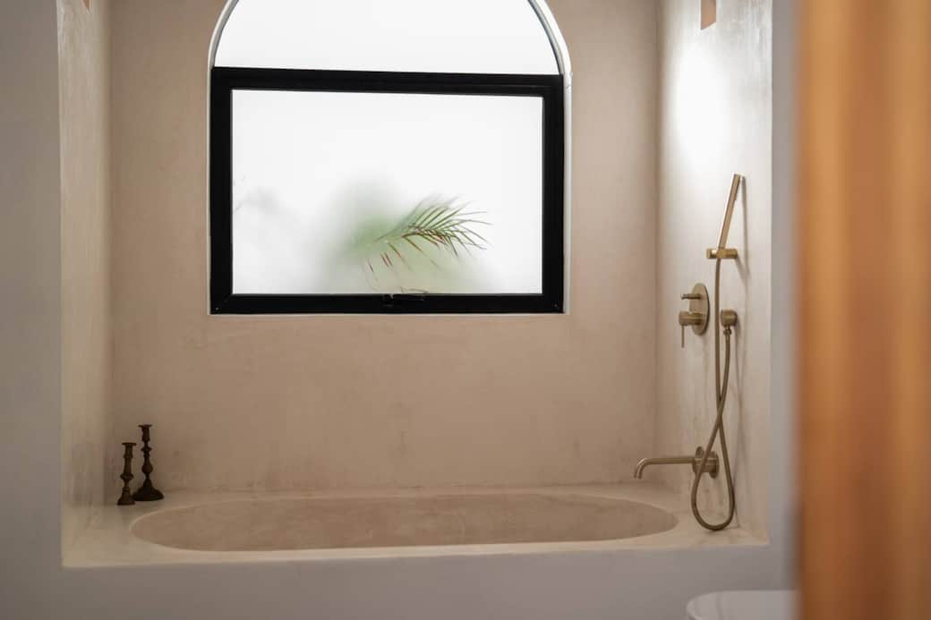 - 1 recámara con cama queen y baño con tina bajo arco de 3 m